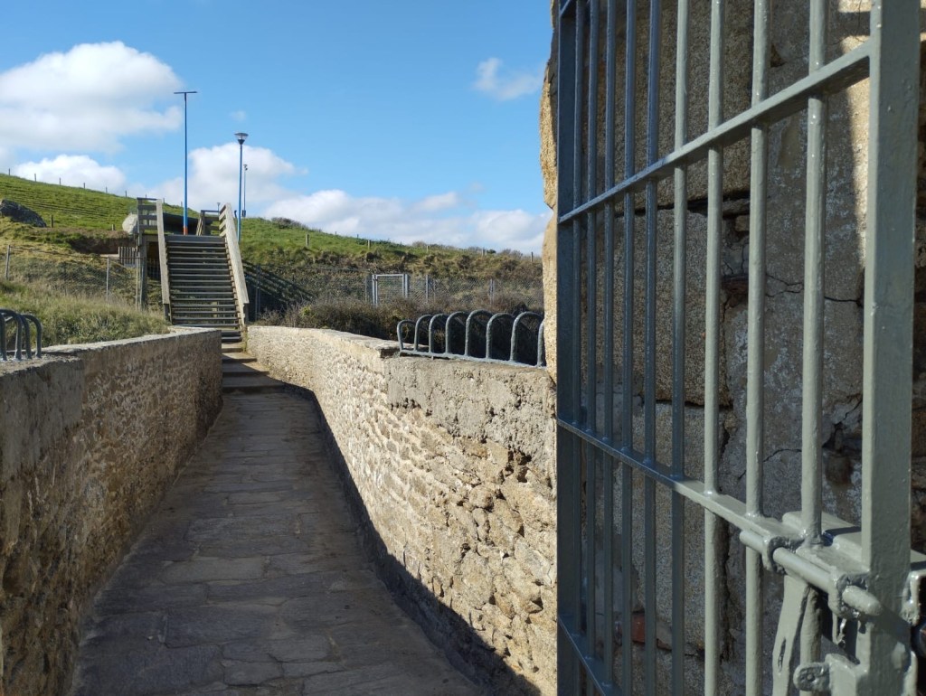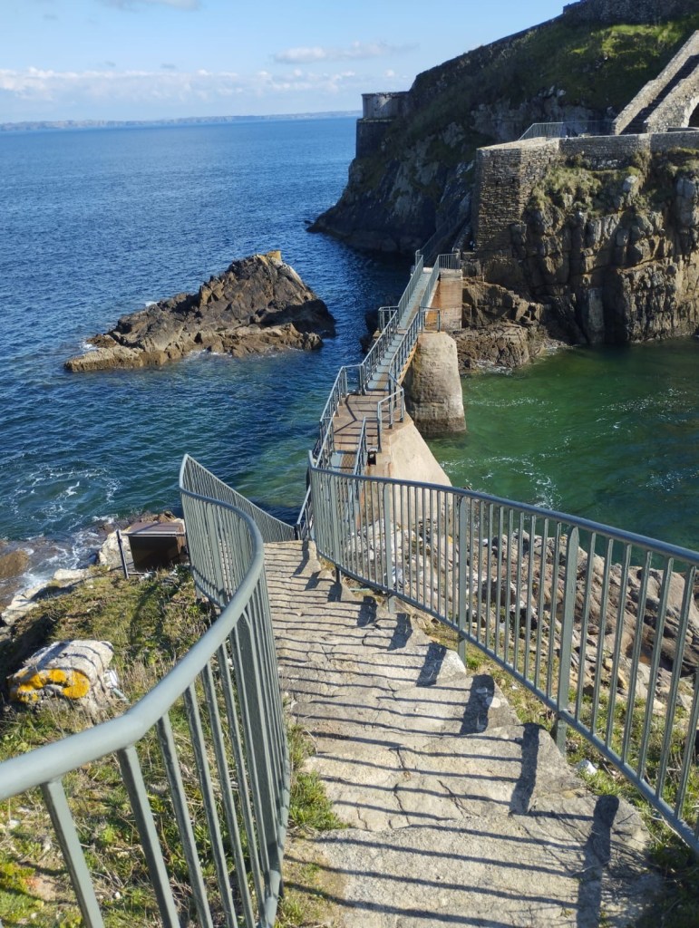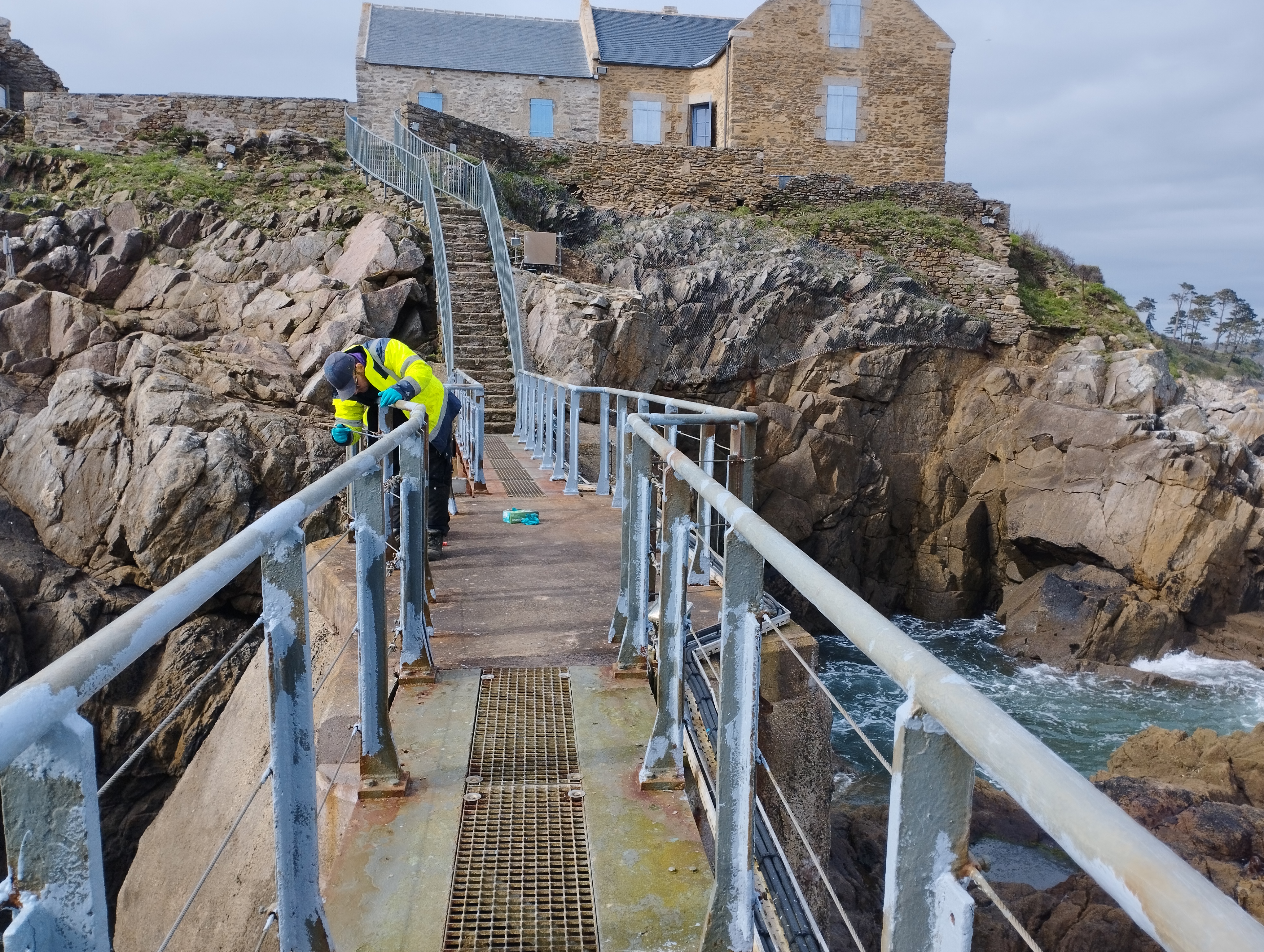 En Mars 2024, protection de la passerelle du fort de Bertheaume avec de la peinture anti-rouille